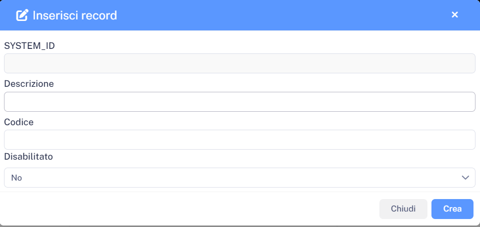 Il campo Disabilitato = Si impedisce agli utenti di selezionare il tipo doc per nuove valorizzazioni.