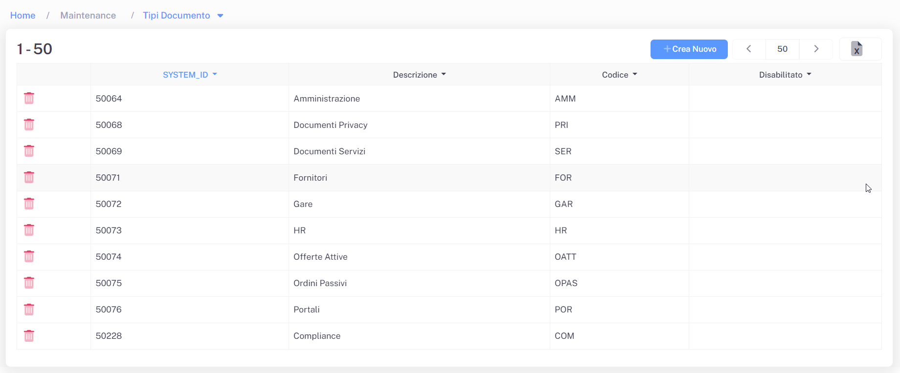 Puoi aggiunere un tipo documento cliccando su "Crea Nuovo"