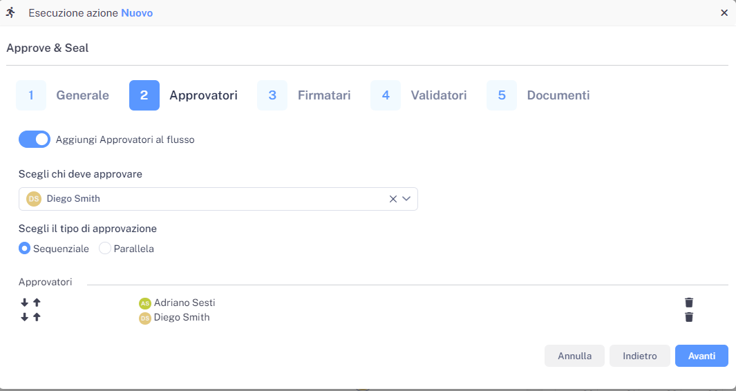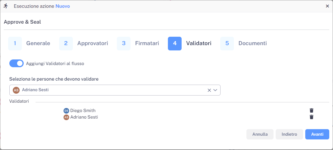 - Scegli uno o più validatori: selezionandoli tra gli utenti della tua azienda.