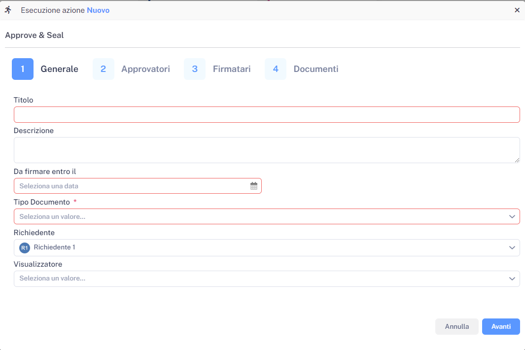- Approvatore/i: Selezione di uno o più approvatori tra quelli centisti a sistema.