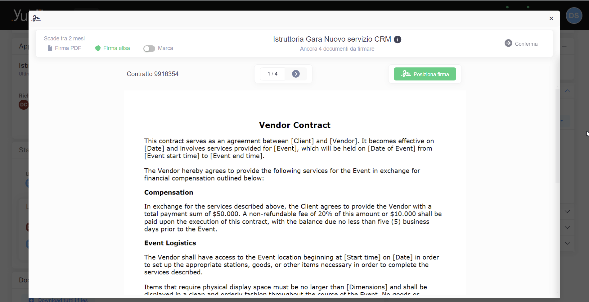 Se il richiedente ha precedentemente indicato il punto in cui la firma dev'essere posizionata, seleziona l'azione "Firma Documento".